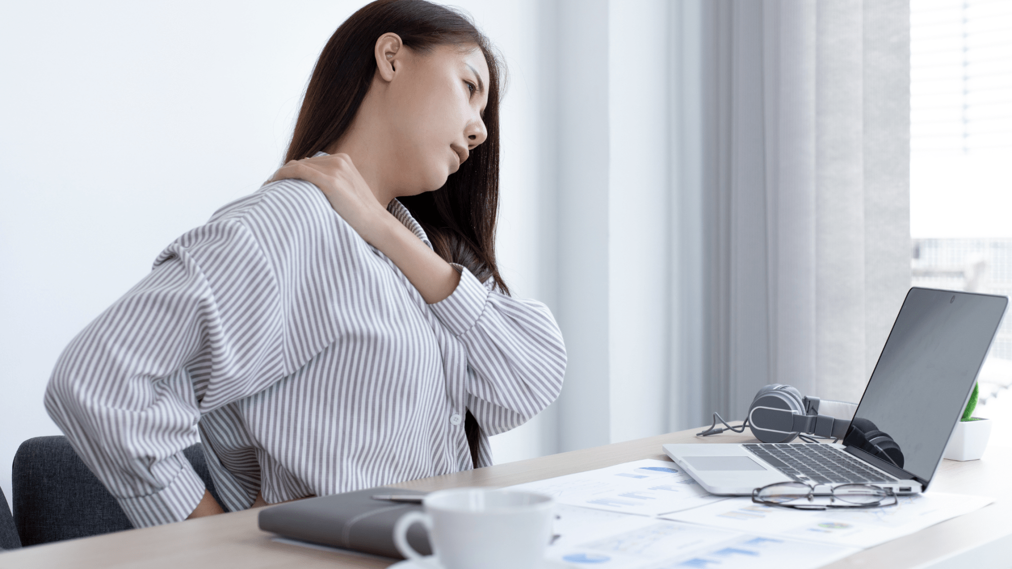 vous avez souvent les épaules crispées, les hanches en flexion permanente… pensez à changer de position quand votre corps vous donne un signal : croisez les jambes, tendez les, pratiquez des rotations de buste, grandissez vous, faites une pause pour marcher régulièrement, étirez-vous…